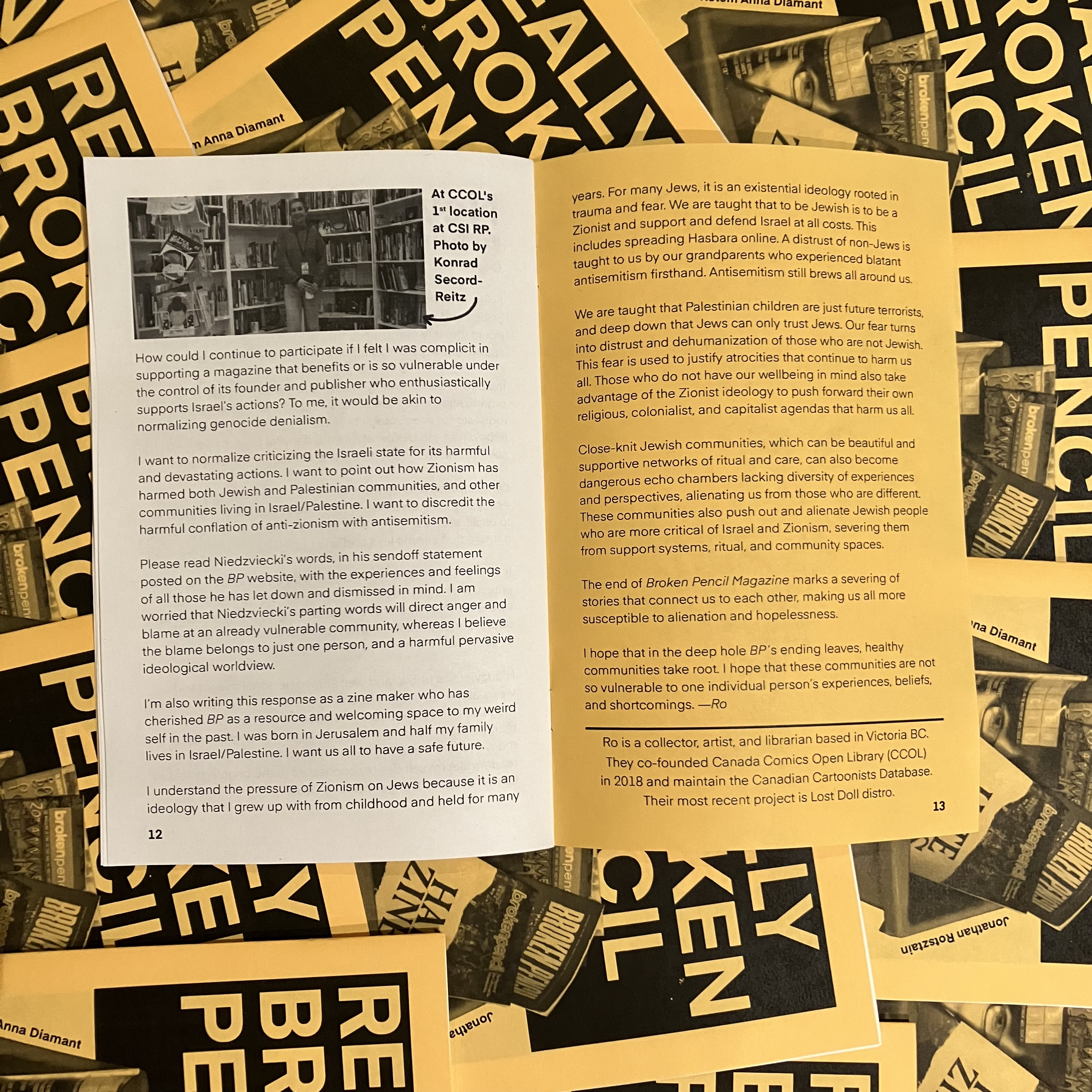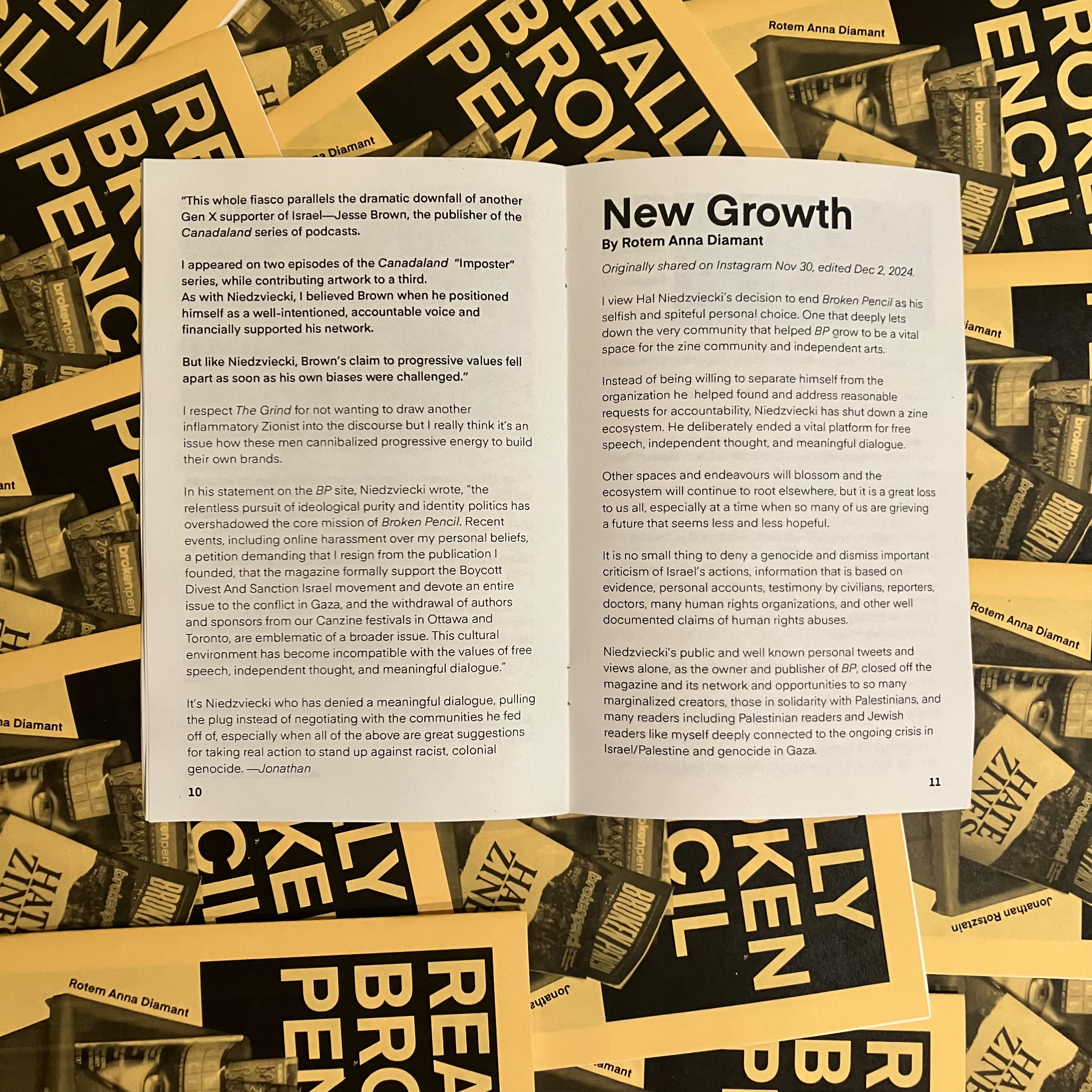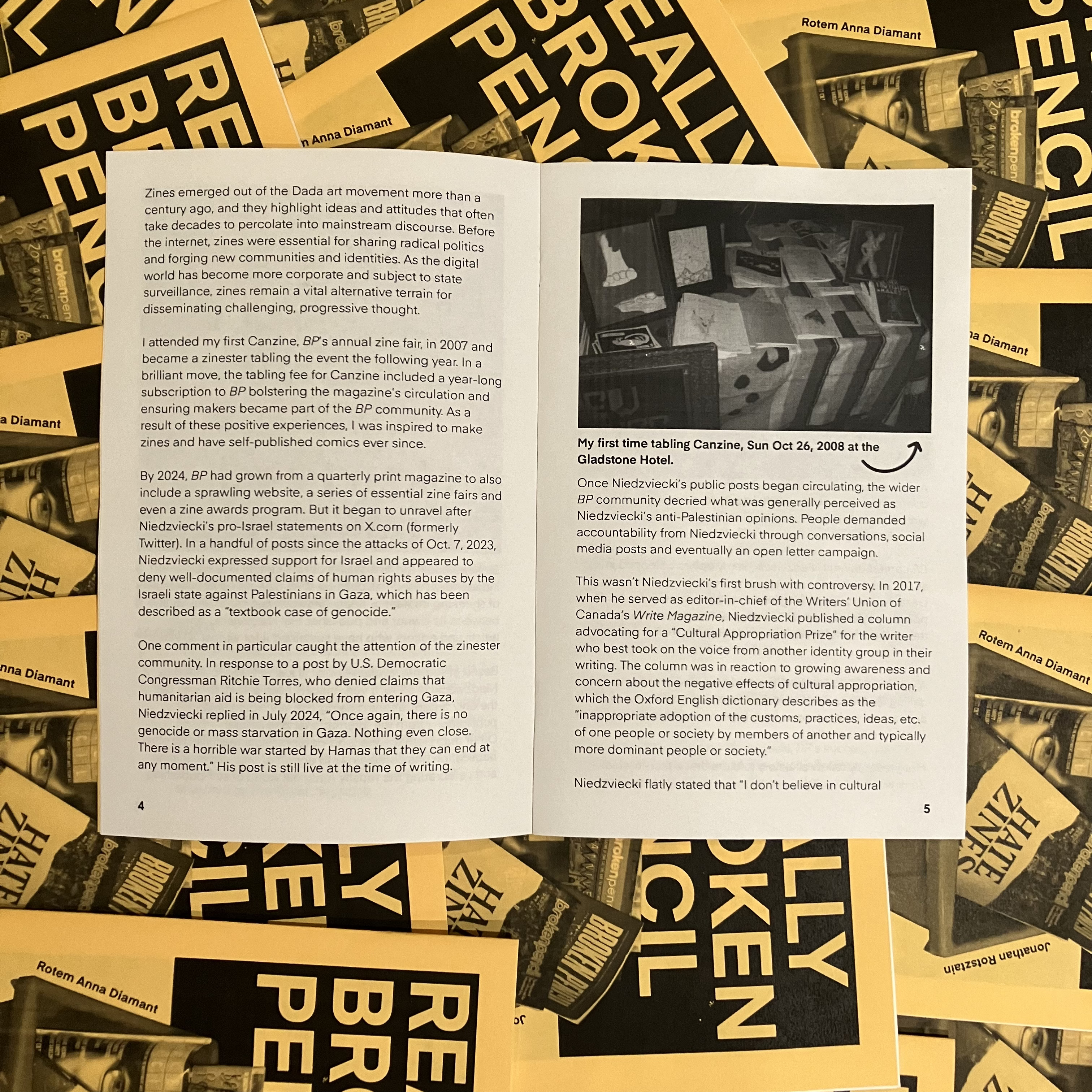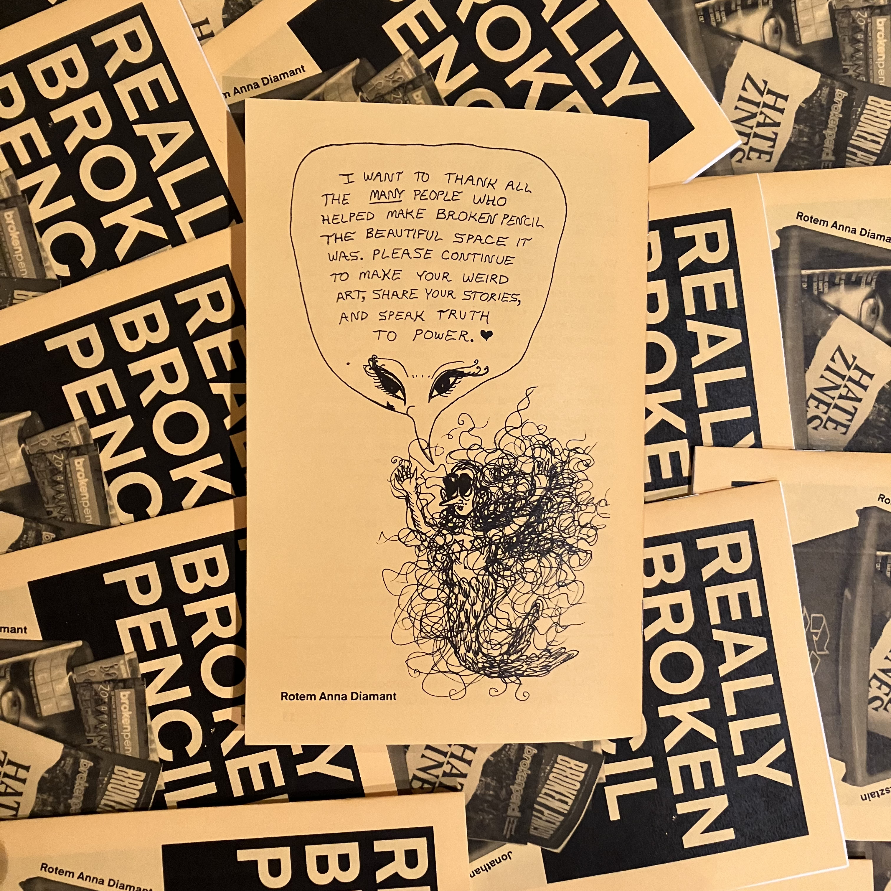 In the "Really Broken Pencil" zine, I share a first-hand account of the collapse of Broken Pencil Magazine following the founders inability to adapt to community criticism.